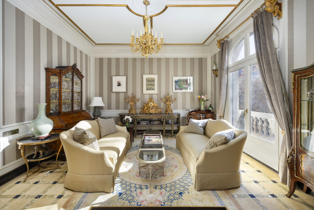 Luxurious flat blending classic and minimalist elements with four bedrooms, balcony views, and...