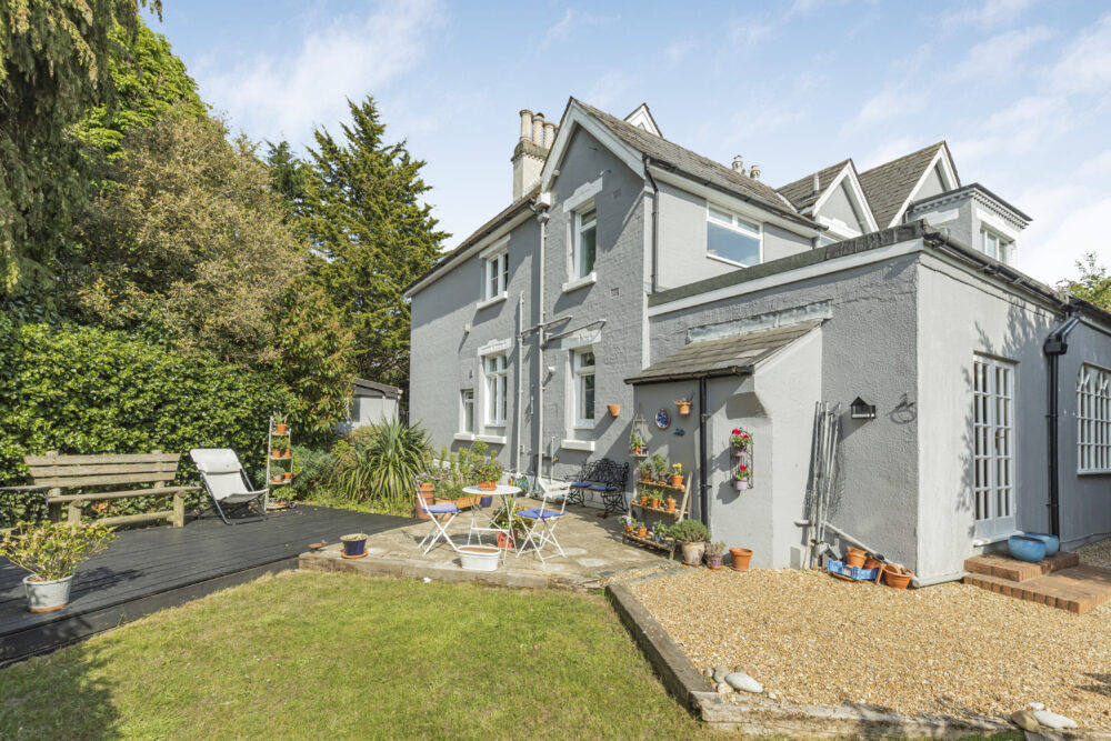 Outside there are well maintained gardens with shrubs, a decked area facing south ideal for entertaining and relaxing, accessible from a side gate and from the beautiful landscaped side garden designed by local award-winning Landscape Designer Cleve West.