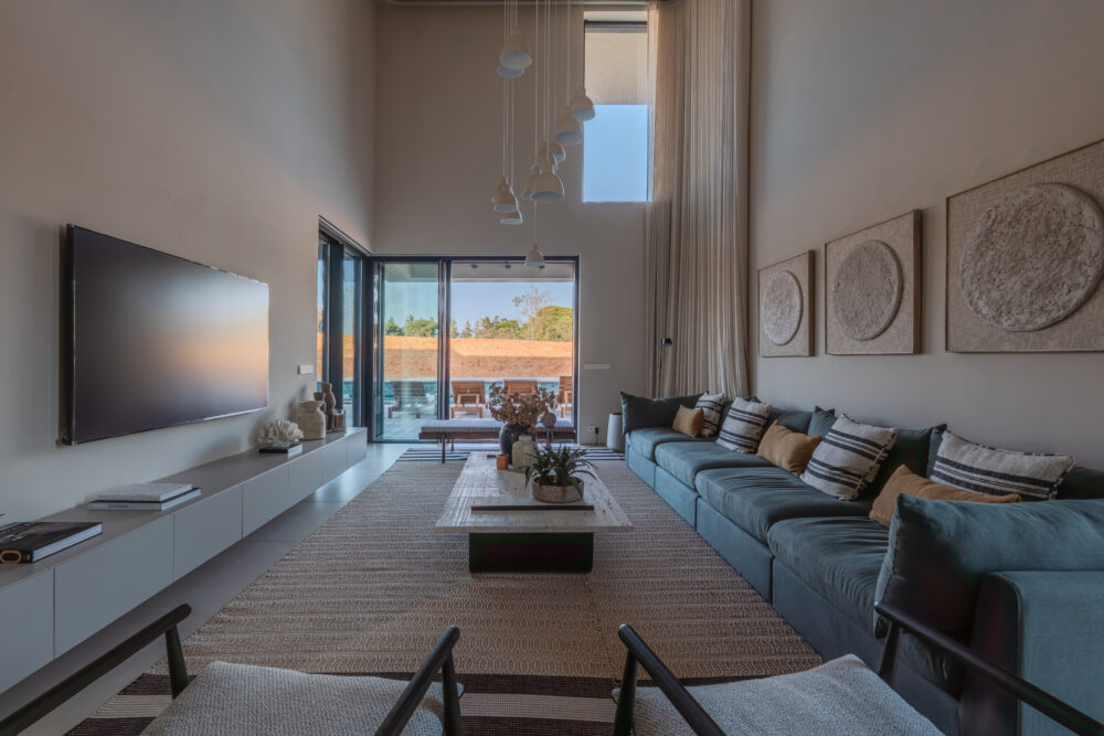 Minimalist forms and a palette of light, serene colors, the Sand Villas feature an architecturally bold first floor that is more voluminous than the ground level.