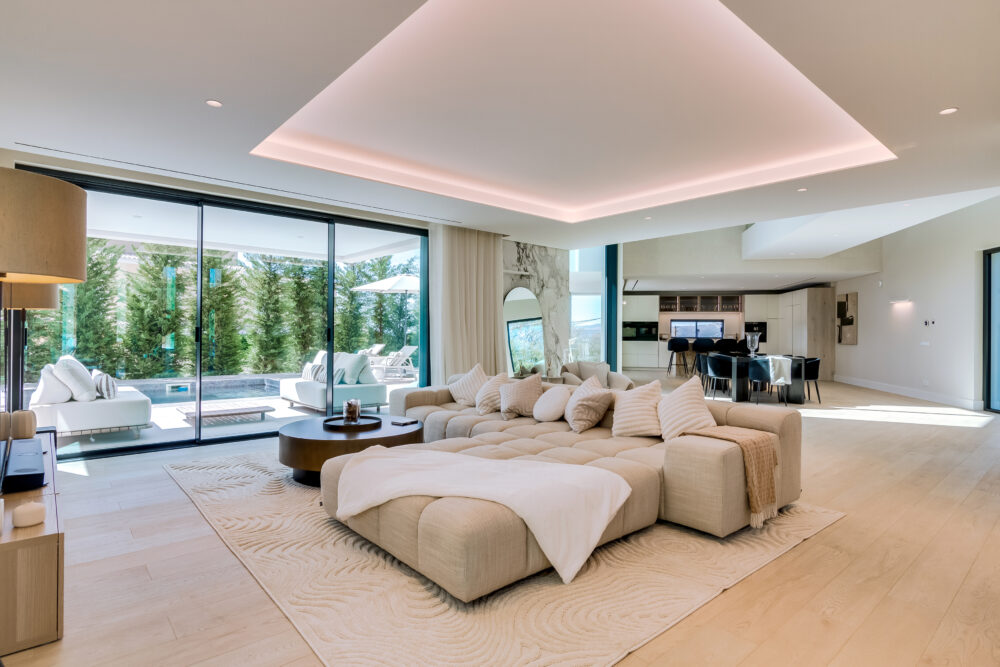 Four ensuite bedrooms, distributed across the three levels, include a luxurious primary suite with a freestanding tub and private terrace, providing comfort and privacy for family and guests. The lower level offers versatile space, a guest bathroom, laundry room and a two-car garage. A saltwater swimming pool with a water feature and an outdoor kitchen make this home ideal for entertaining and relaxation. With close proximity to Vilamoura, Quinta do Lago and Vale do Lobo, the villa combines modern living with access to the Algarve’s finest amenities.