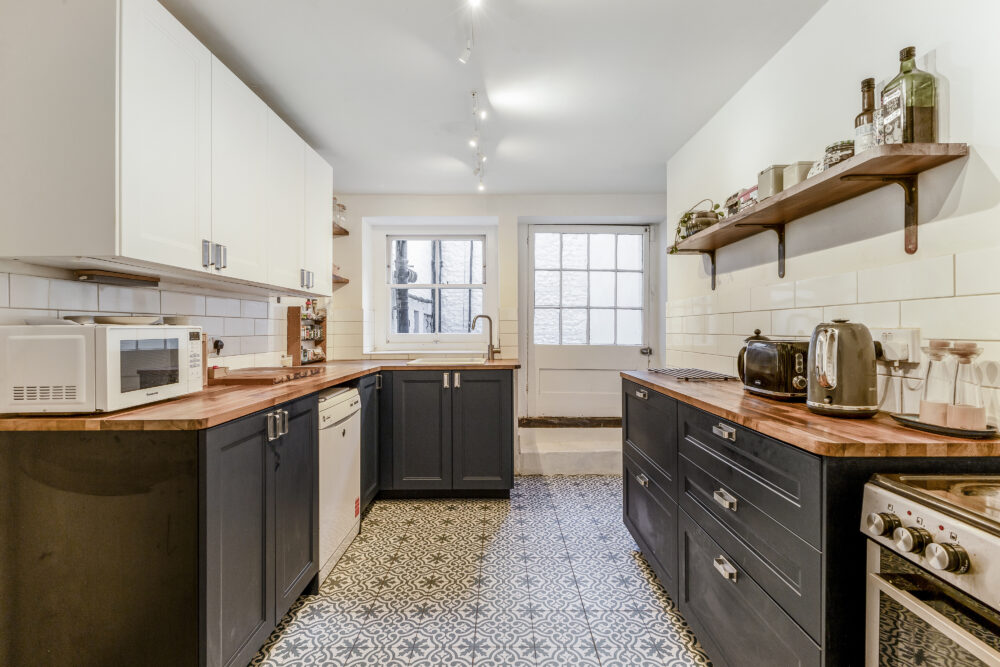 rear of the property, with an access gate to the garaging beyond. The garden features low maintenance planting and a paved terrace which is ideal for dining al fresco and entertaining in the summer months. To the front of the property there is a charming east facing terrace that is accessible from the kitchen/dining room and makes for a great space for a morning coffee. The property significantly