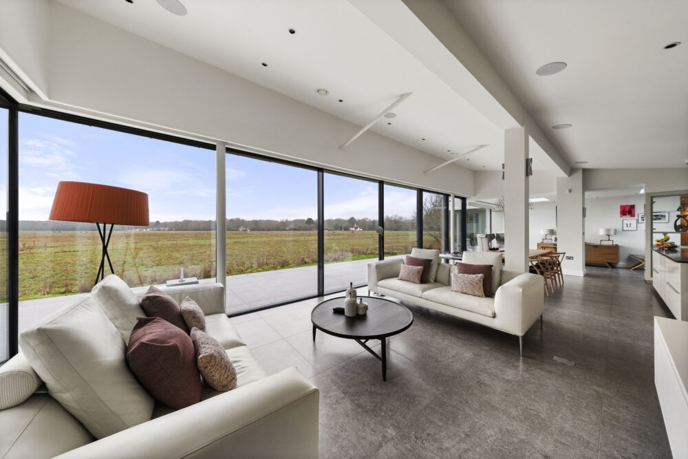 Fieldsend is a striking, award winning contemporary home set within open countryside while remaining exceptionally well connected. Designed by a leading architect and completed in 2016, the house combines refined modern living with cutting edge sustainability and exceptional design quality. Floor to ceiling glazing opens the principal living spaces directly onto open fields and the garden beyond, with frequent wildlife sightings enhancing the sense of tranquillity and connection to the landscape.