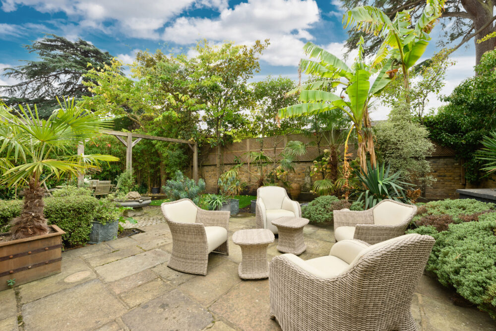 Externally the south-west facing garden is largely paved with areas of lawn and bedding creating a peaceful oasis for al fresco dining and entertaining, surrounded by mature and diverse planting.