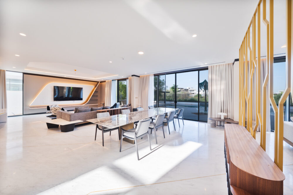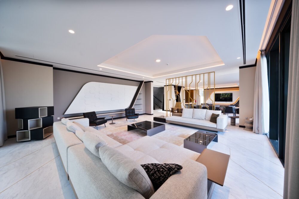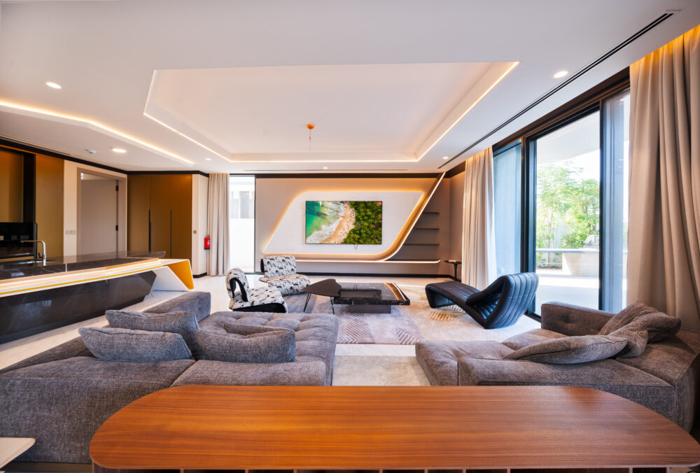 These villas feature a lavish penthouse master suite, an expansive basement accommodating over five vehicles, a sophisticated recreational area, and a state-of-the-art home theater.