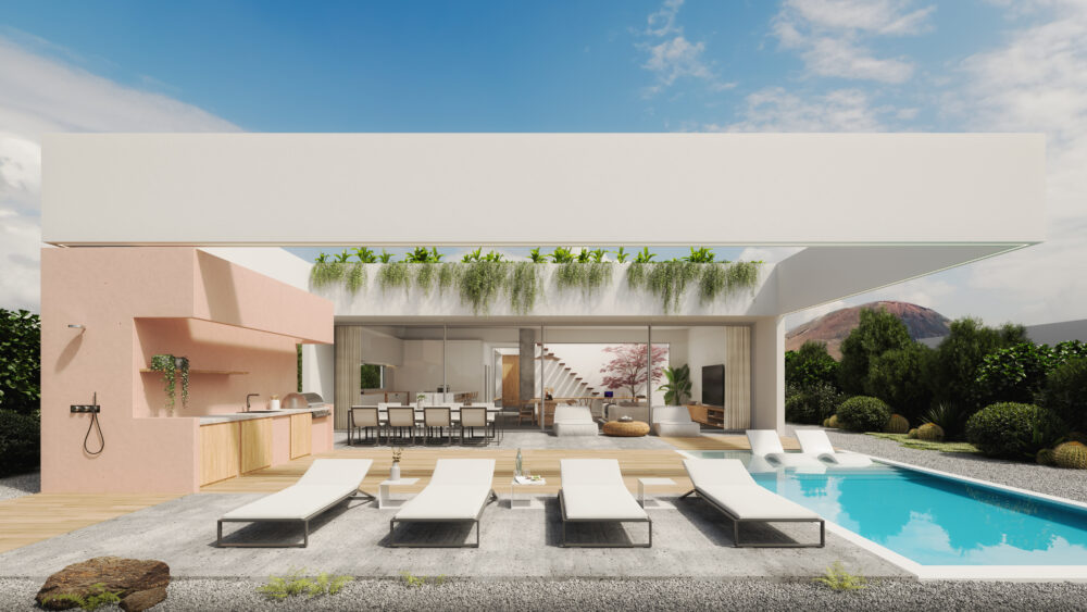 The plots stand out for their spaciousness and privacy: 15 units between 2,300 and 2,500 sqm, and 6 more between 1,100 and 1,400 sqm. Each villa has volcanic stone walls and a hedge, ensuring privacy. All the villas are single-story, maintaining a low density that respects the landscape and enhances the quality of the outdoor spaces. There are currently 8 homes available.