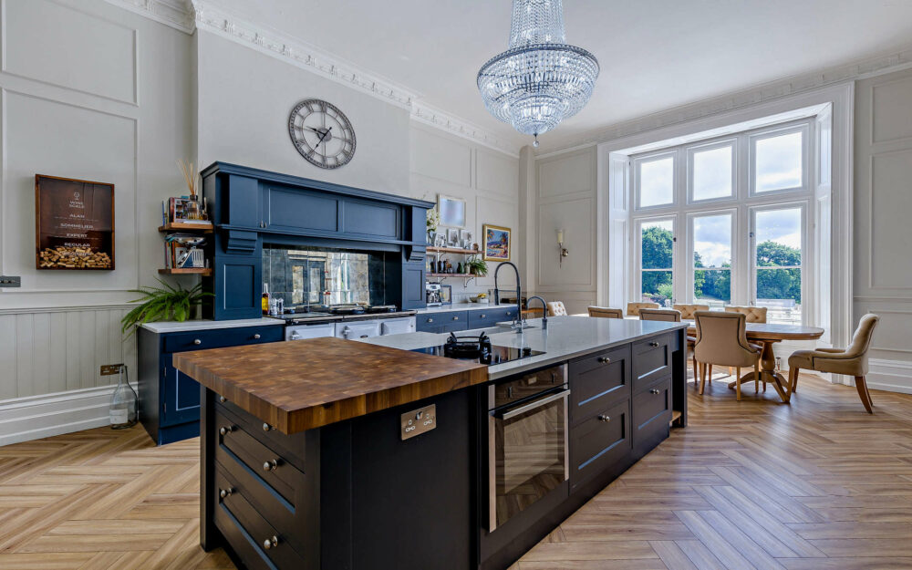 Finally, two entrances from the Inner Hall lead to an incredible Kitchen. Finished impeccably with a Herringbone floating floor, the cabinets are hand crafted with dovetail joints, including larder cupboards, wine cooler and Fisher & Paykel Fridge Freezer.