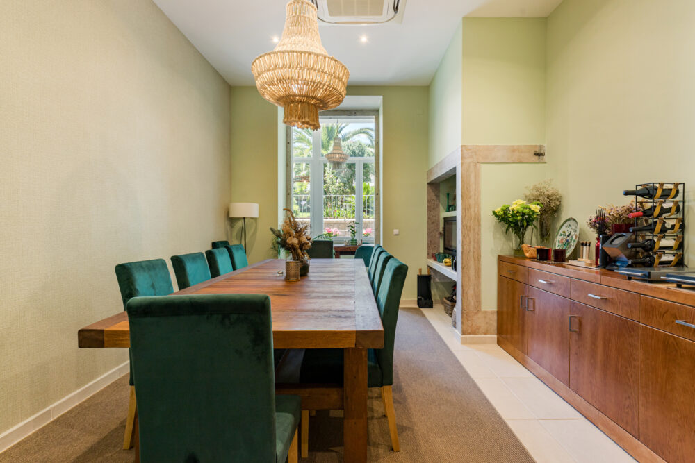 It has five bedrooms, three of which are en-suite, a fully equipped kitchen, a laundry room, and a pantry. It has air conditioning and central heating. Other highlights include the high ceilings, approximately four meters high, and the excellent finishes.
