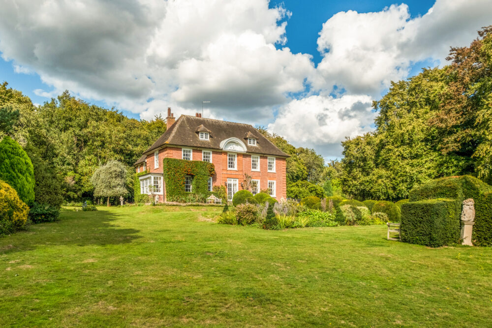 The Red House sits in delightful grounds of approximately 8 acres within the Kent Natural Landscape. It comprises stunning formal gardens with Yew hedging and topiary, herbaceous flower borders and lawns with an abundance of mature trees including Copper Beech, Horse Chestnut, Oak and fruit trees. There is a paddock, an orchard and a magical area of ancient woodland with a delightful Edwardian summerhouse. The property is approached through a five bar gate and driveway leading to a parking and turning area with garaging and storage sheds.