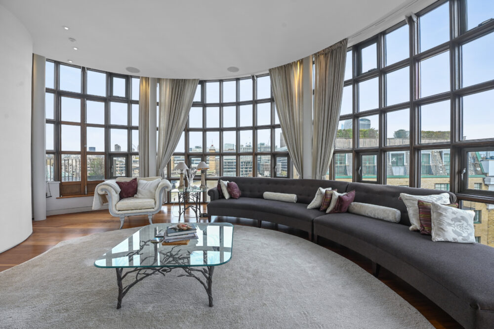 Set above one of Bankside’s most atmospheric old streets, this one-of-a-kind circular penthouse offers extraordinary, all-round views of London.