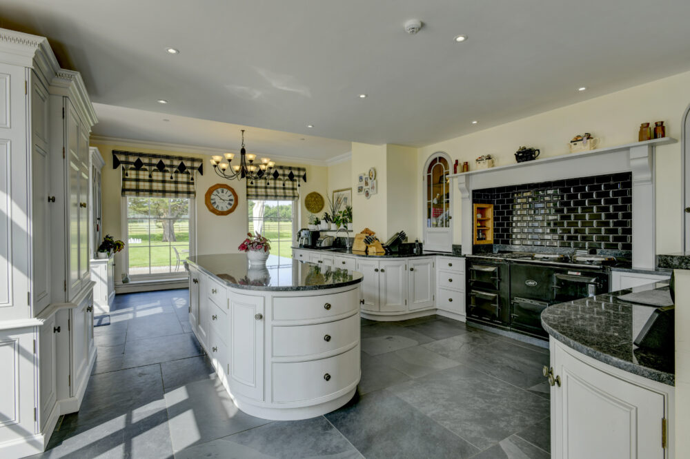 Outside, the gardens and grounds offer plenty of privacy and seclusion, whilst taking in the extensive views. There are large areas of level lawn, terraces, borders, a kitchen garden and orchard, paddocks and woodland, which complete the bucolic setting. Within the grounds, there are two substantial outbuildings, which include further garaging, a workshop and store, carport and gym. Adjacent to the garaging, there is a plant room and pellet store for the biomass boiler system.