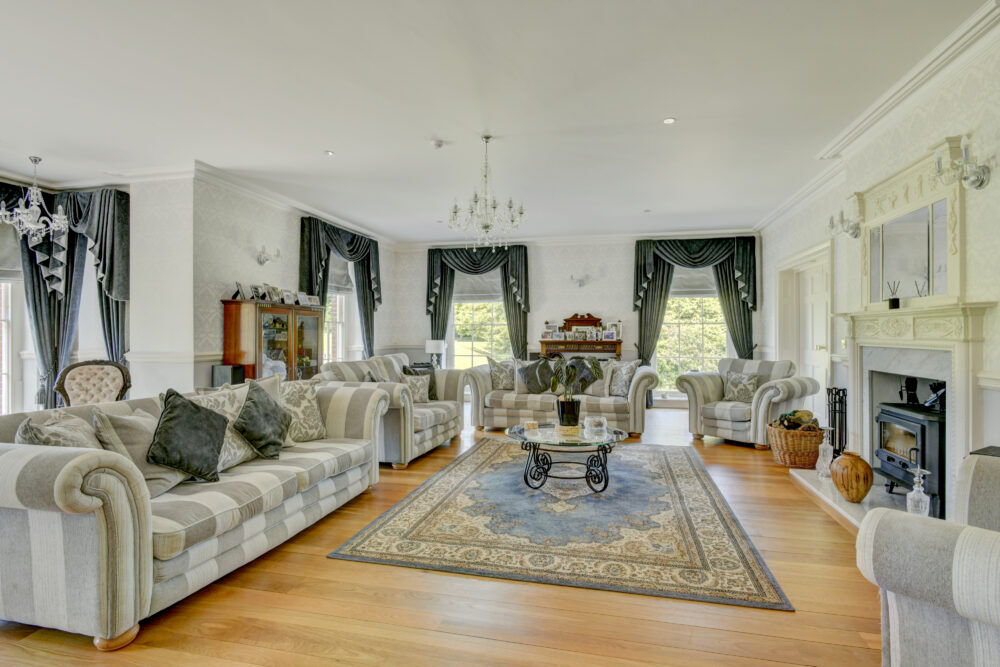 A grand entrance hall welcomes you into the heart of the home, leading to a beautifully proportioned drawing room, formal dining room, and a spacious kitchen/breakfast room ideal for family living and entertaining. A cosy sitting room, dedicated study, practical utility room, and cloakroom complete the ground floor layout. On the first floor, the principal bedroom suite features a luxurious en suite bathroom and dressing area. There are four further bedrooms on this floor, two of which have en suite bathrooms, while the remaining rooms are served by a generous family bathroom.